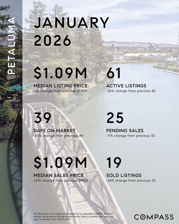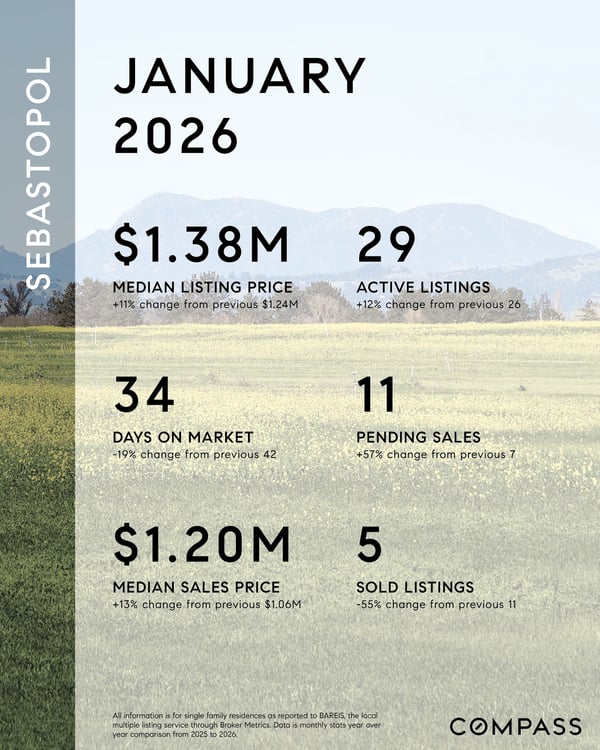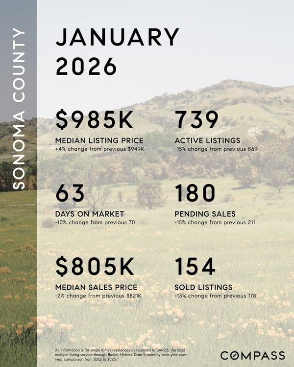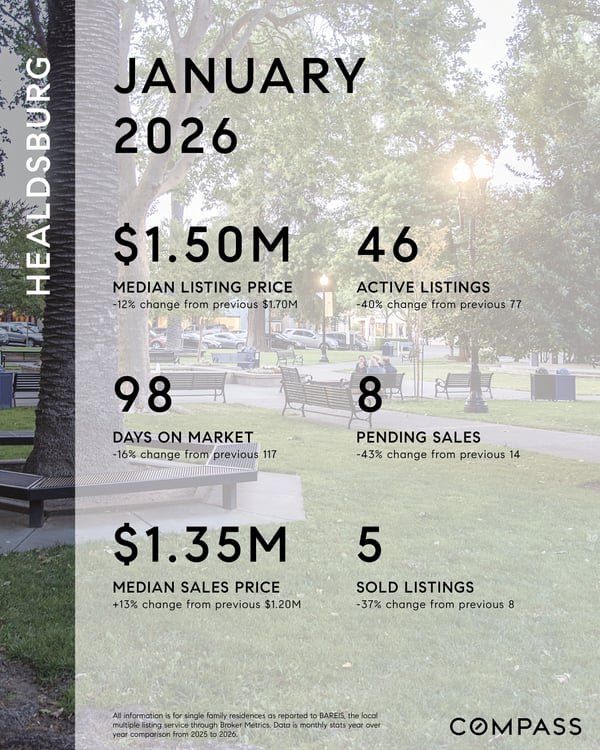 Across Sonoma County, January’s seasonal reset expressed itself locally with clear contrasts—Sebastopol showed renewed buyer engagement and faster movement on well-prepared homes, Petaluma continued to anchor primary-residence demand with shorter days on market, and Healdsburg shifted into a lower-volume, higher-precision environment where pricing and positioning mattered most.